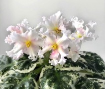 Нежнейшие воздушные белые цветы с сиреневыми мазками и более темным сиреневым фэнтази. Темно-зеленые ровные листья с бело-розовой пестролистностью формируют красивую стандартную розетку. При высоких температурах цветы будут иметь более интенсивный…